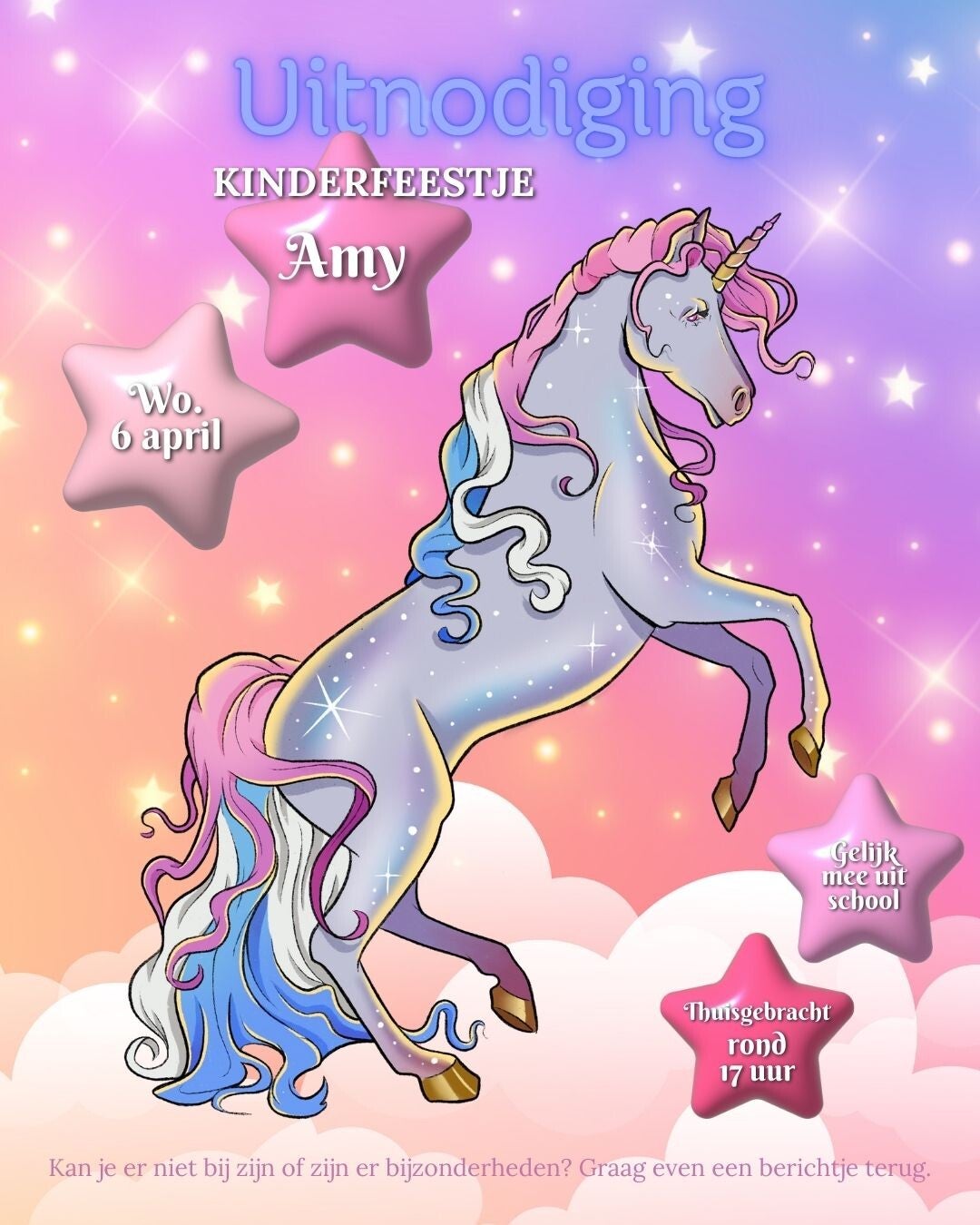 Uitnodiging - Kinderfeestje Eenhoorn & Sterren