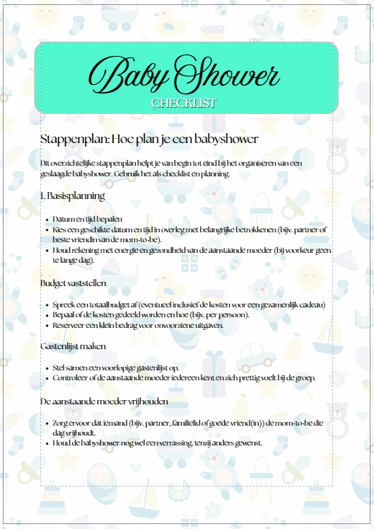 Organiseer moeiteloos een babyshower met deze complete baby shower checklist. Inclusief planning, tips en overzicht voor een stressvrije dag. 💛